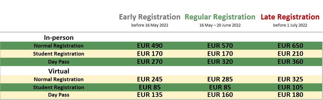 Note for authors: For inclusion in the Book of Abstracts the registration & payment needs to be done until 13th June 2022 latest.